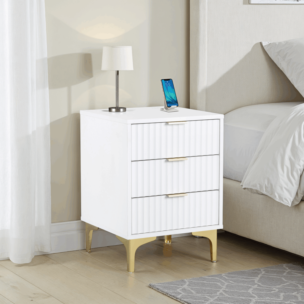 Miami 3 Drawer Bedside Cabinet White Compact Bedroom Storage Unit