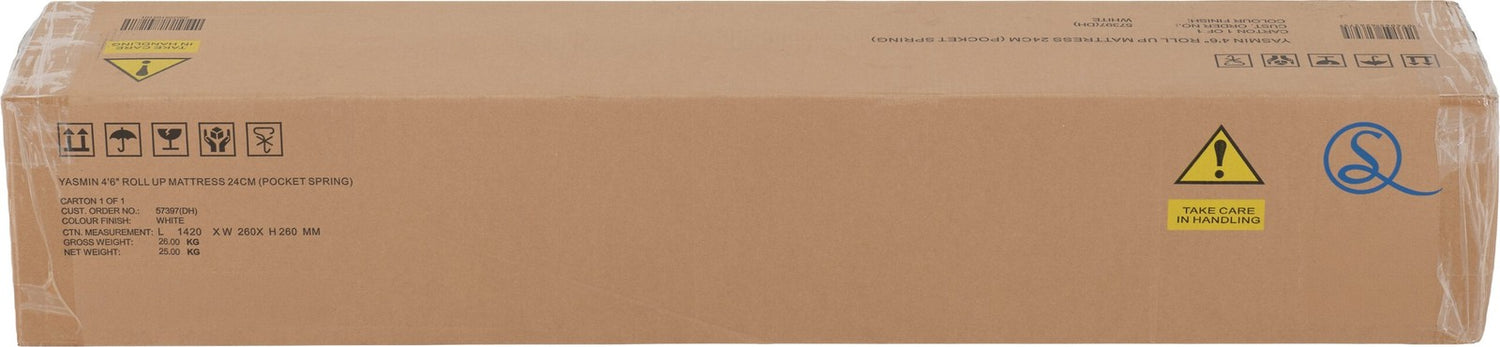Yasmin 4' 6" Double Roll-Up Mattress 24cm (Pocket Spring) Non-Woven Bottom