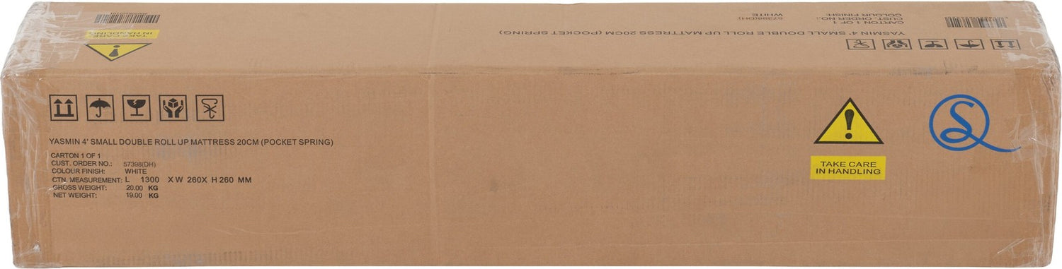 Yasmin 4' Small Double Roll-Up Mattress 20cm (Pocket Spring) Non-Woven Bottom